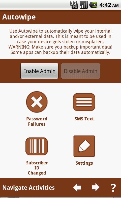 Активация полного wipe по смс , так же при смене карты.
