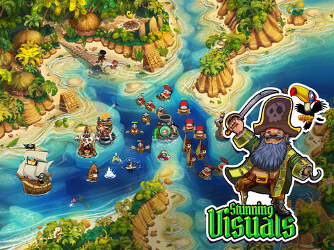 Путешествуйте и грабьте на семи морях, с обновляемыми башнями, усовершенствованными технологиями, развертыванием героев и сверхдержав!
