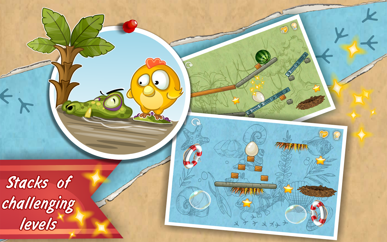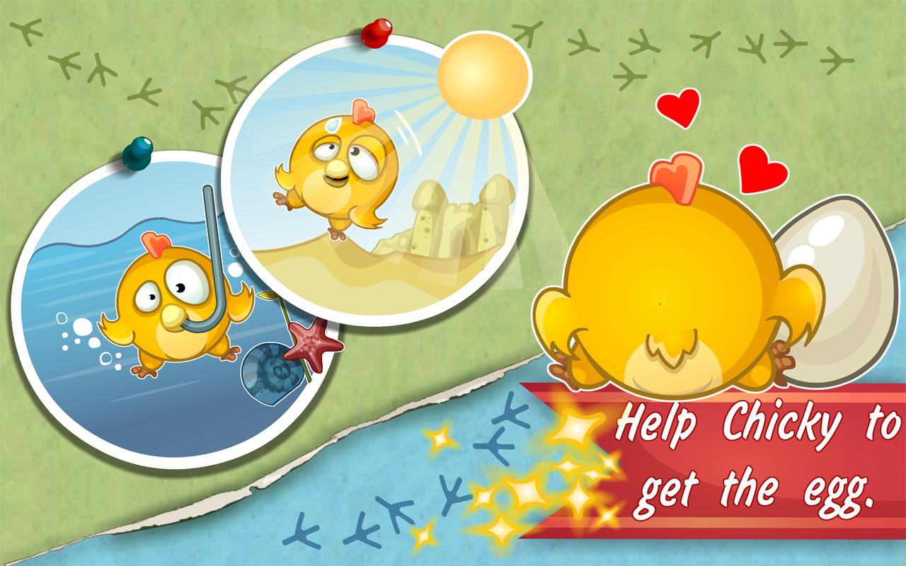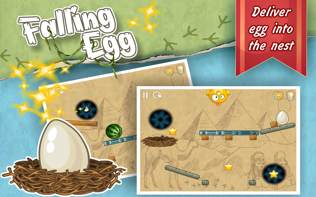 Falling Egg - отличная аркадная головоломка для Вашего мобильного устройства. Красивая графика и интересный геймплей, всевозможные физические элементы. Вашей задачей будет помочь цыплёнку Чики прокатить яйцо более чем по 80 уровням, доставив его точно в гнездо. Будьте предельно собранными и внимательными.