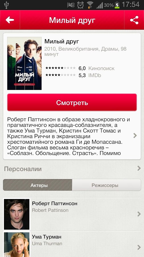 - Персоналии. Вы сможете посмотреть, в каких фильмах снимался актер или где он выступал в качестве режиссера;