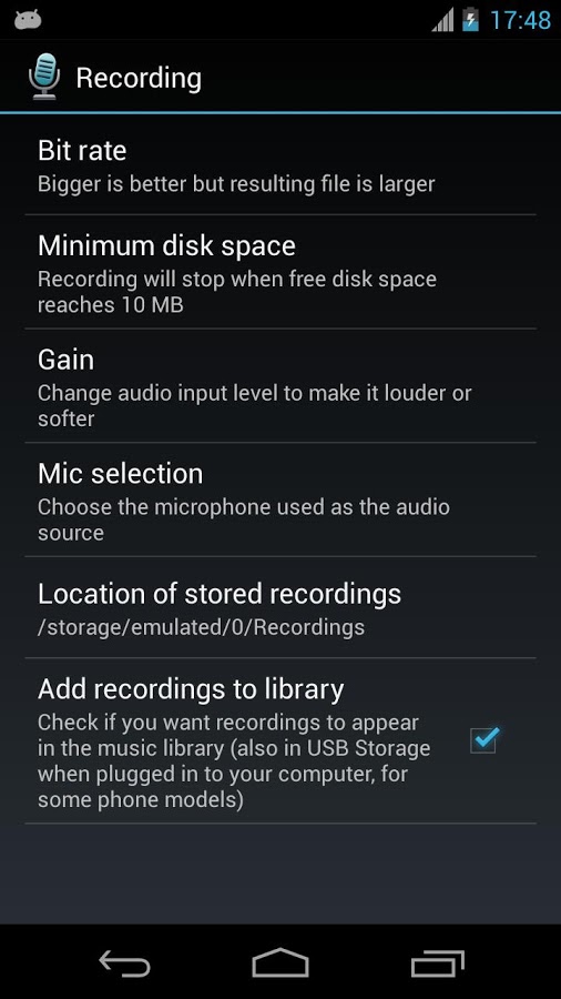 Записывайте голосовые заметки, песни, лекции, музыку, разговоры или даже концерты с высоким качеством воспроизведения звука на частоте 44 кГц — намного лучше стандартного приложения по записи звука. Раскройте истинный потенциал микрофона Вашего устройства!