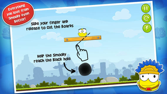 Правильно разрежьте доски, чтобы помочь Smoody достичь черной дыры! Все, что вы любите в оригинальном Smoody, плюс новые интерактивные объекты! 96 уровней, и еще не все! Используйте пузыри, веревки, воду, парашюты, телепорты, губки, вентиляторы чтобы помочь Smoody достичь черной дыры.
