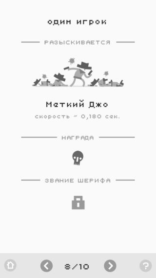 Суть игры заключается в том, чтобы первым выстрелить в оппонента после слов Ready… Steady… Bang! Причем пауза перед «bang» всегда случайная, что иногда заставляет понервничать. Для выстрела нужно нажать в любом месте вашей половины экрана. То же самое делает и второй игрок.