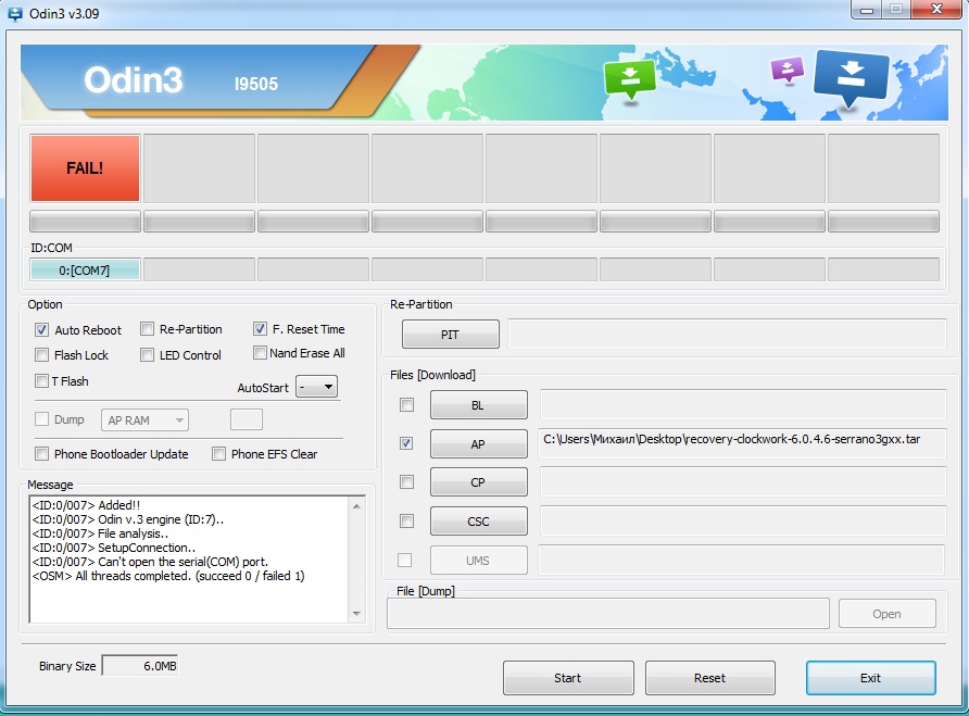 7. Скачайте Odin3_v3.07.zip и распакуйте архив, желательно где-то рядом куда вы распаковали recovery-clockwork-6.0.4.6-serrano3gxx.tar.md5. В этом архиве нам понадобится только Odin3 v3.07.exe, другие файлы не трогайте.
