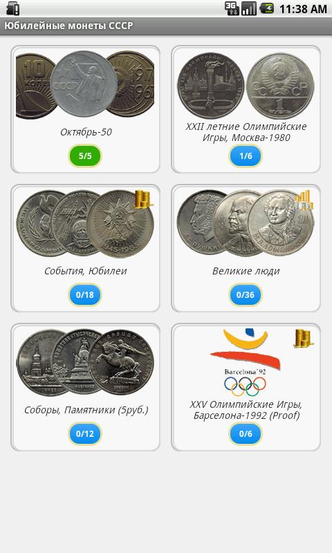 Приложение для нумизматов и просто интересующихся. Может использоваться как инструмент для работы с коллекцией, либо как справочник. Содержит полный перечень юбилейных монет и монет регулярного чекана с 1921 года, также содержит информацию о пробных монетах СССР. Более 1200 монет! Юбилейные серии в недрагоценных металлах: Юбилейные монеты СССР, Юбилейные монеты банка России (1992-1995) (В том числе, серия "Красная книга"), Юбилейные монеты РФ (есть новые монеты 2013 года)