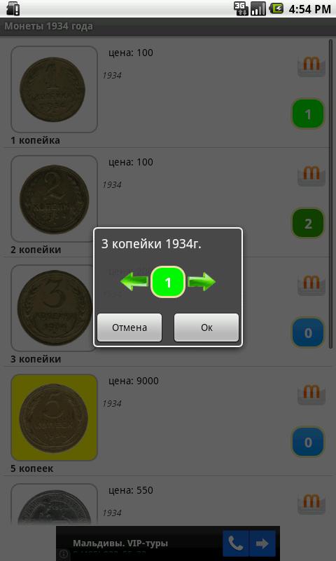 - Гибкий поиск позволяет выводить монеты не только по годам, но и по номиналу, а также наличию в коллекции.