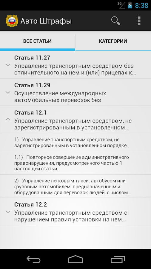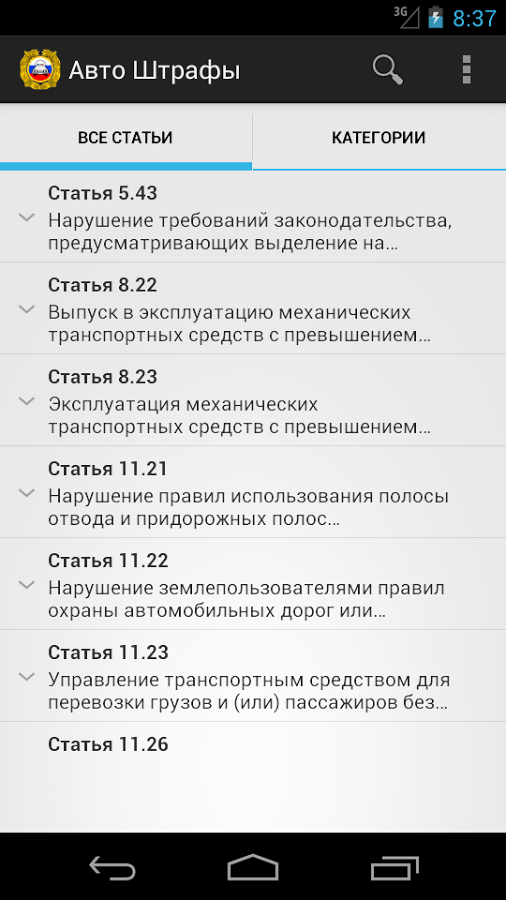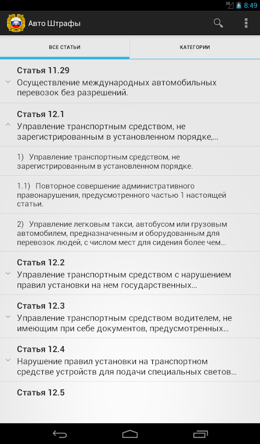 Авто Штрафы - Бесплатное приложение является актуальным справочником штрафов за нарушения правил дорожного движения (ПДД) в Российской Федерации (РФ). Не дай себя обмануть! Знай цену своих нарушений! Всегда актуальная информация! Информация взята с "Официальный интернет-портал правовой информации" и "Официальный сайт ГИБДД МВД России".