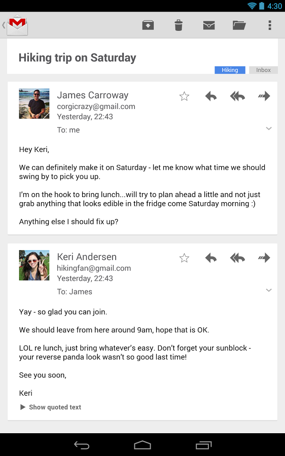 Ищете простой, быстрый и удобный почтовый клиент? Попробуйте Gmail! Он будет мгновенно сообщать о новых письмах и поможет найти любую переписку. Кроме того, вы сможете читать письма и писать ответы в любое время – даже когда нет доступа в Интернет.