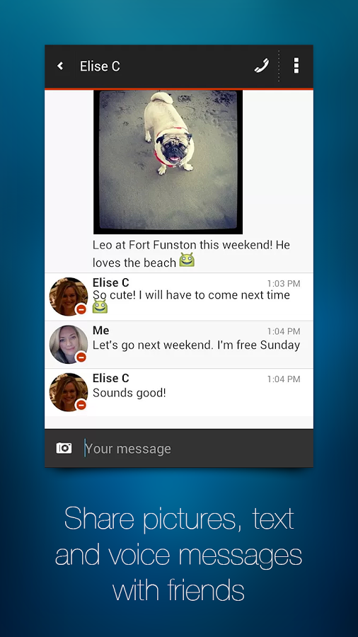 - Отсылка голосовых сообщений превращает ваше устройство в портативную рацию