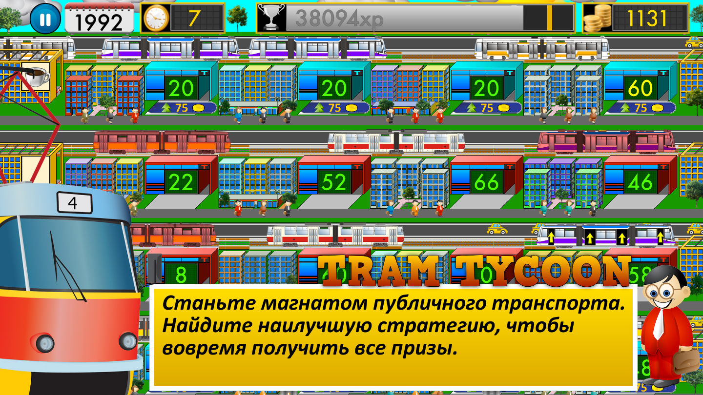 Горожане ожидают комфортные трамваи, и это очень важно – не позволяйте им заказывать такси! Каждый трамвай предлагает определенную вместимость (пропускную способность), цену и опыт за каждого перевезенного пассажира. Город меняется на каждом уровне, так что вам придется много думать! Будьте умным директором и мудро организуйте свою карманную империю трамваев.