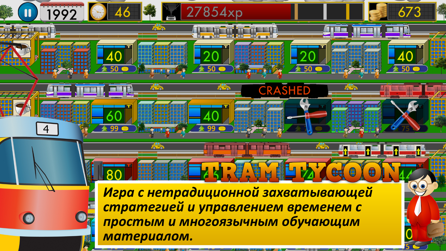Попробуйте что-то новое! Станьте магнатом общественного транспорта и насладитесь этой игрой с нетрадиционной стратегией и временным управлением! Пройдите игру сквозь историю с 1960 по 2020 годы, покупайте множество различных трамваев, обновите станции и найдите лучшую стратегию, чтобы вовремя успеть получить все награды.