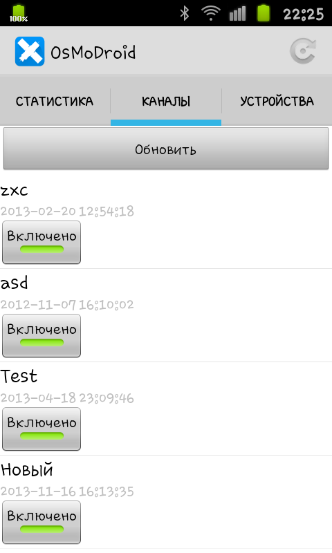 - вступать и создавать каналы (некие группы устройств для совместного мониторинга)