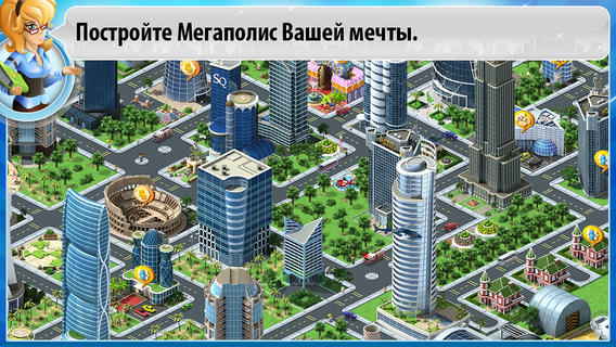 Вам будут доступны здания инфраструктуры: аэропорт, железная дорога, ГЭС, фабрики, морской порт, налоговая и мэрия, атомные станции, а также огромное количество парков, садов, статуй, фонтанов и других важных для города строений, благодаря которым Ваш город станет одним из лучших во вселенной Мегаполиса! Создавайте с друзьями необычные города, привлекайте больше новых жителей, обменивайтесь подарками, и узнайте кто из вас лучший архитектор!