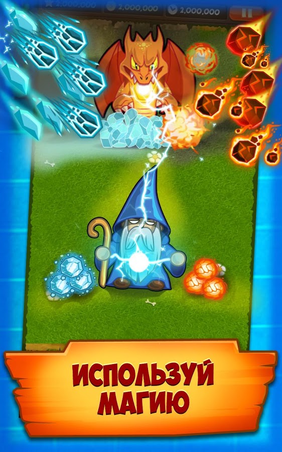 Расставляйте на карте катапульты, пушки или баллисты, чтобы не дать армии исполинских ящеров дойти до ворот замка. В безвыходной ситуации спасет арсенал разрушительных заклинаний.