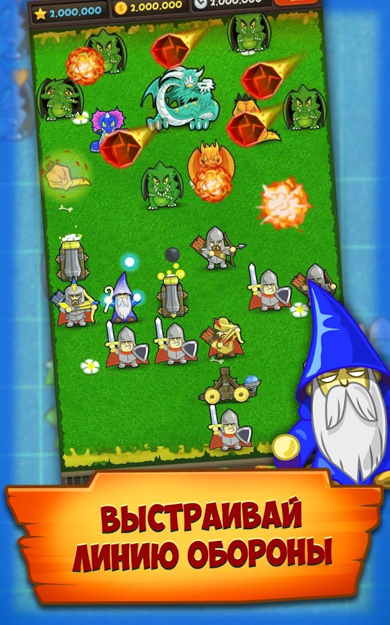 Эта хитрая тактика вносит свежий и оригинальный мотив в любимый миллионами игроков жанр «защита замка». Чтобы не дать драконам уничтожить ваш дворец, придется комбинировать своих бойцов - три мечника превратятся в лучника, три арбалетчика в мага и т.д. А в перерывах между боями каждого солдата можно усиливать в кузнице.