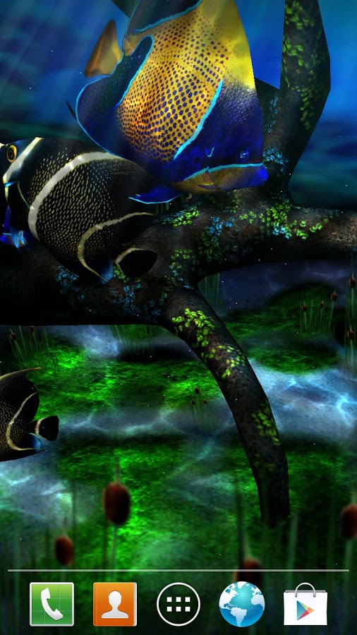 Обновленный My 3D Fish, но только теперь в режиме реального времени с новым виртуальным трёхмерным аквариумом. Любите рыб и растения в аквариуме? Тогда вы легко полюбите эти обои. Вы можете настроить много параметров, например добавить или убрать несколько элементов и т.д.
