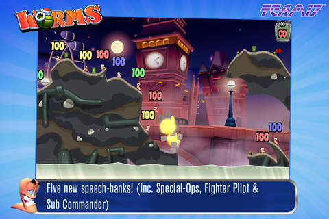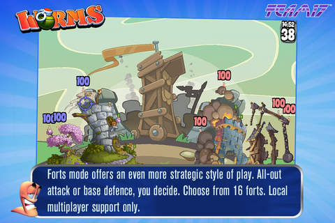WORMS - знаменитая компьютерная игра на Вашем мобильном устройстве! Вам предстоит поучаствовать в тактических войнах между командами червяков. Огромный выбор оружия, хорошие карты, редактор карт и прочие интересные особенности не дадут Вам заскучать. Выберите себе червячков в команду и сразитесь с противником. Докажите, что Вы достойны дать отпор любому сопернику!