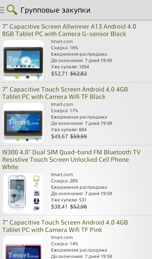 Данное приложение поможет вам самостоятельно найти и заказать товар напрямую в Интернет - магазинах Китая без грабительских наценок и услуг посредников. Экономьте средства, покупая товар на распродажах, используйте купоны на скидки и участвуйте в групповых закупках. Согласитесь, что гораздо удобнее искать и сравнивать цены на товары сразу в нескольких десятках китайских магазинах.