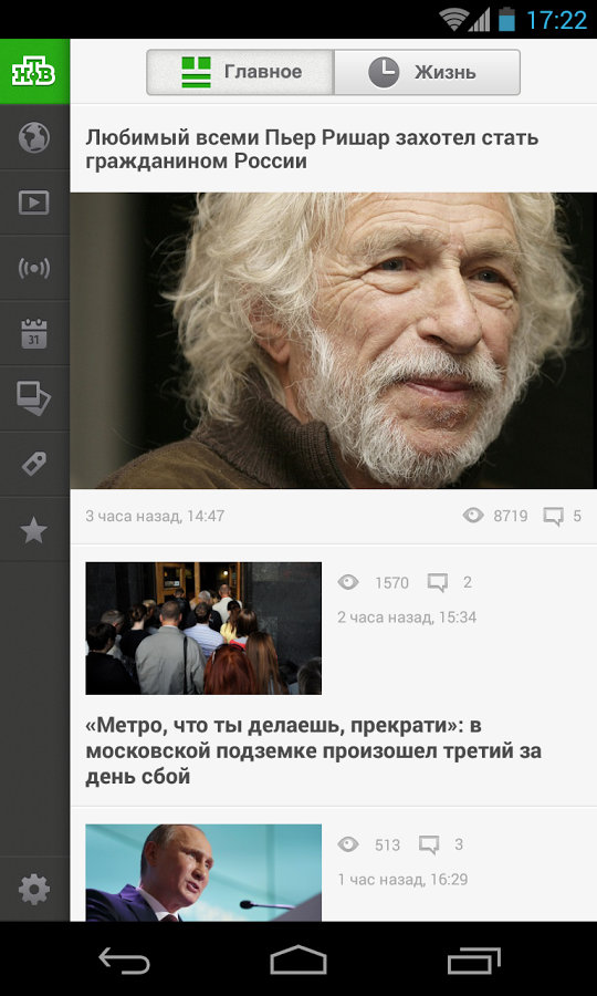 Присоединитесь к 10 000 000 посетителей НТВ.Ru, чтобы смотреть видео и телеэфир, читать самые качественные материалы от ведущего российского телеканала в своем смартфоне. Более 24 часов видео ежедневно, днем и ночью. С помощью приложения вы сможете в любой момент быть в курсе событий, смотреть прямой эфир НТВ и полные выпуски и архив всех передач, которые когда-либо были показаны по телевизору. Самые свежие новости в самый короткий срок окажутся у вас под рукой, и вы сможете не только посмотреть и почитать их, но и поделиться ими со своими друзьями.