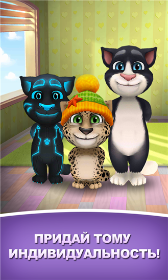 - Дай волю своему воображению: создай собственного Тома, выбрав из более чем 1000 комбинаций шерстки, одежды и мебели.