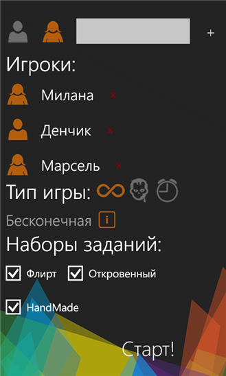 То, о чём вы раньше мечтали, наконец-то появилось! Ваша любимая Правда или Действие только уже под совсем другим градусом! Очень горячие и откровенные вопросы и действия, способные вскипятить даже последнего импотента! Разгорячите свою вечеринку и раскрепостите всех её участников! В ходе игры каждый по очереди отвечает на вопрос или выполняет какое-то действие. Количество игроков не ограничено. Желаем весёлой и интересной игры!