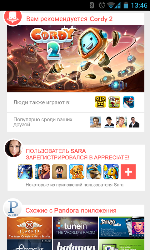 Appreciate показывает лучшие Android-приложения, отобранные специально для вас на основе ваших предпочтений и истории использования, а также на основе предпочтений и рекомендаций ваших друзей в Facebook и других пользователей приложений, которые вас интересуют.