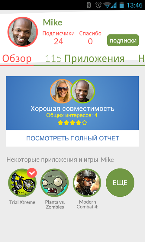 - Профили приложений, из которых можно узнать, почему данное приложение подходит (или не подходит) ИМЕННО ВАМ.