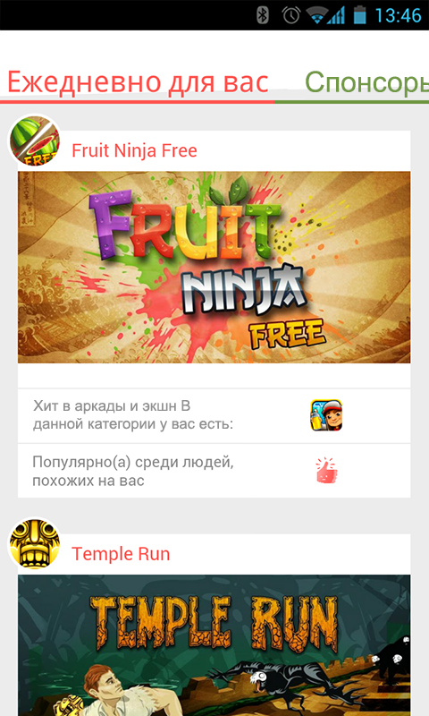 - Автоматически обновляющийся поток приложений, которые могут быть интересны лично вам.