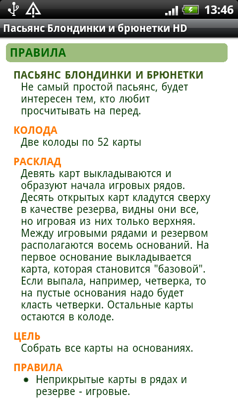 «Блондинки и Брюнетки» - очень интересный пасьянс для всех тех, кто любит и умеет просчитывать свои ходы наперед. Название пасьянса подчеркивает основное правило игры: карты в рядах и основаниях складываются с чередованием цвета. Цель игры - сложить все карты на 8 оснований. Если легкий уровень показался вам слишком простым, попробуйте пройти игру на сложном.