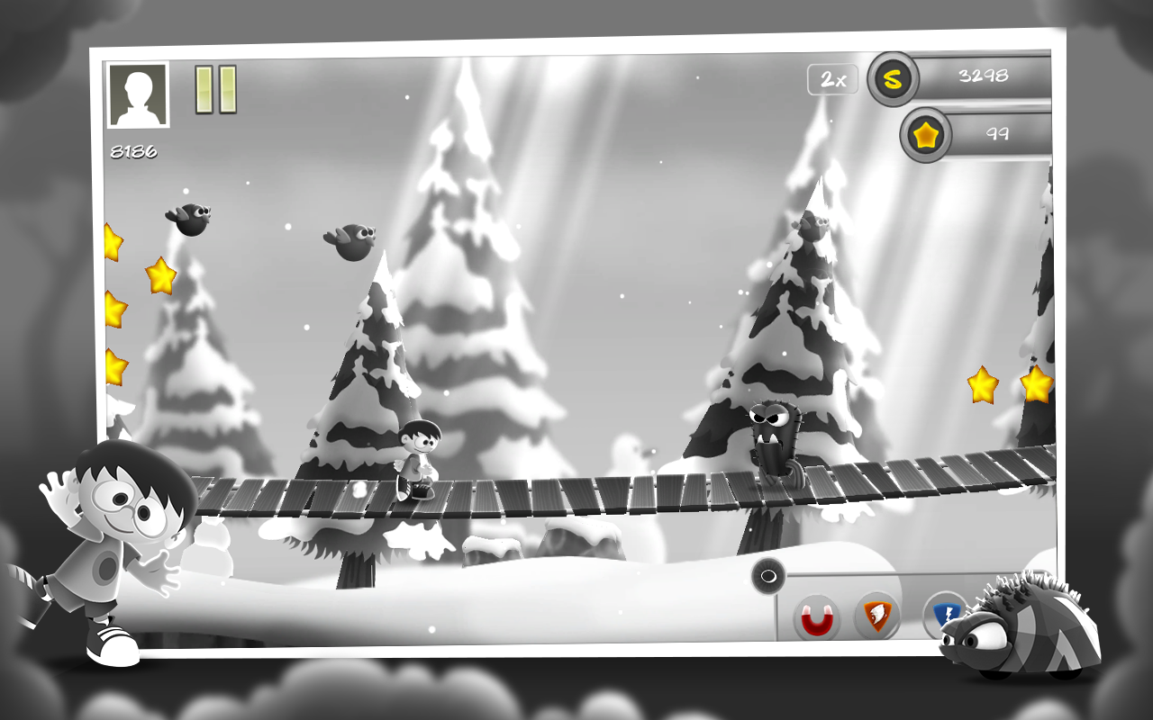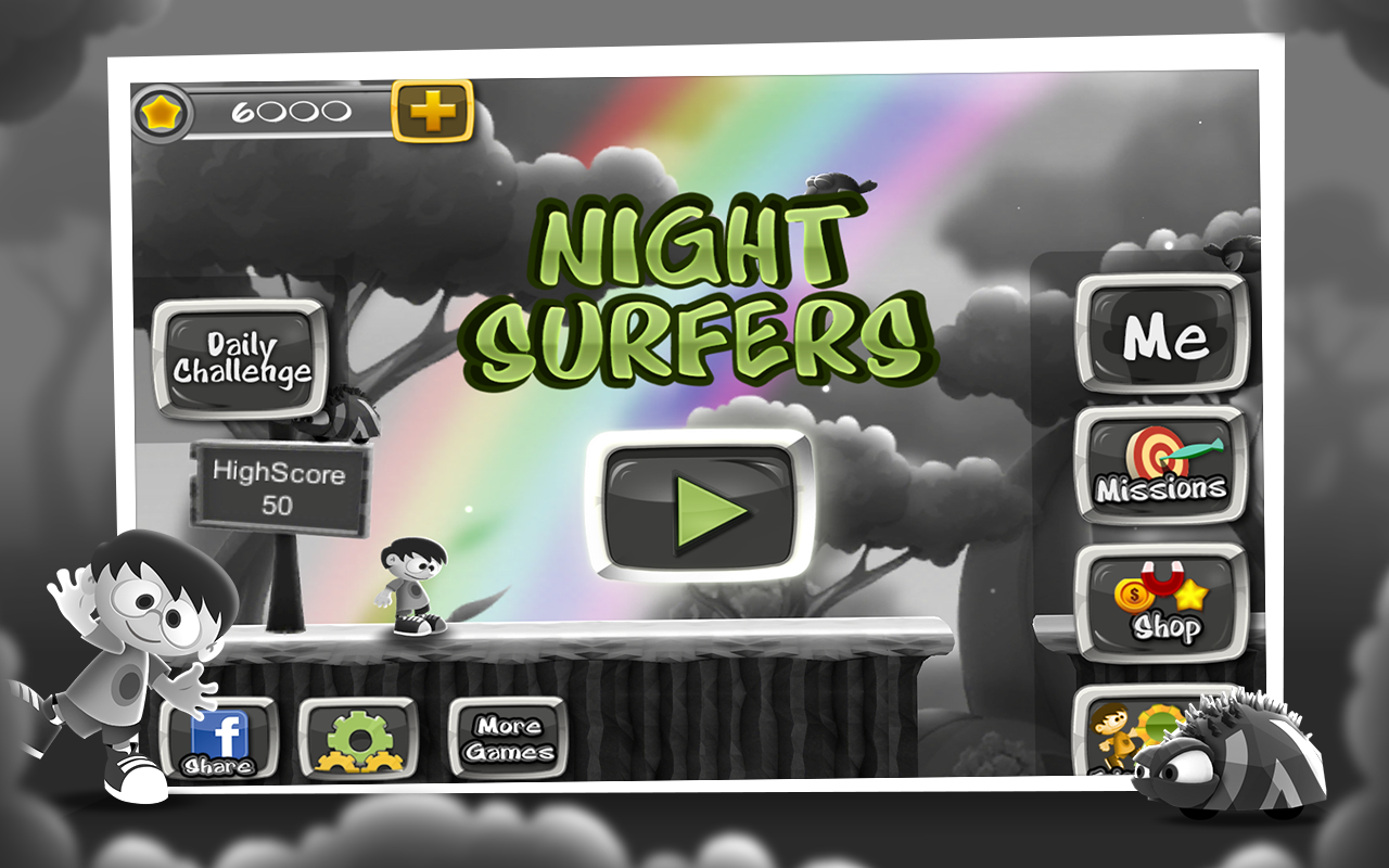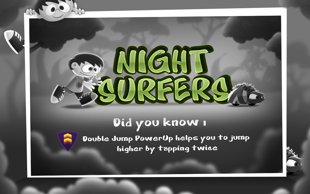 Night Surfers - отличный черно-белый раннер для Вашего мобильного устройства. Выполнен в стиле 2D, с отличной атмосферной графикой.
