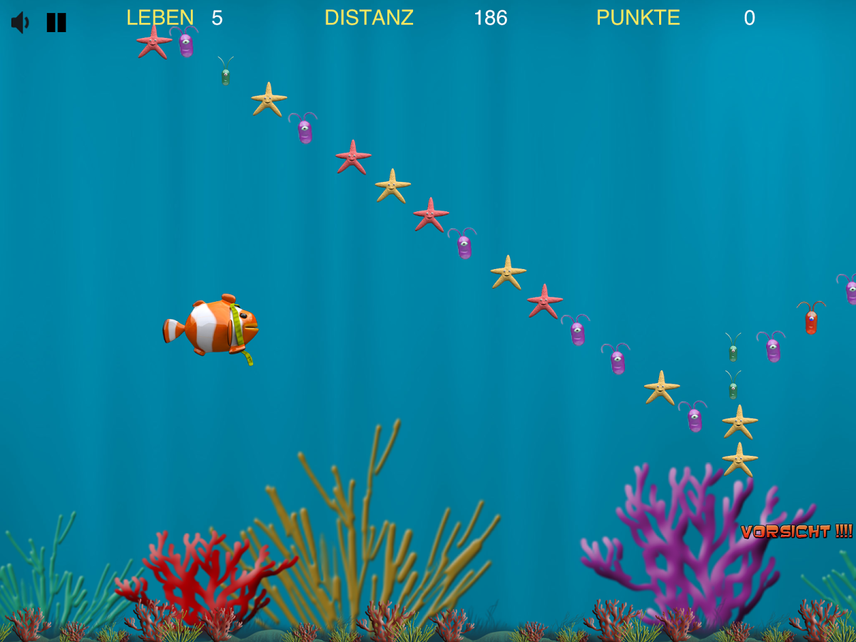 Fritz der Fisch - аркадный раннер для Вашего мобильного устройства, который перенесёт Вас в подводный мир и даст возможность поиграть за вечно голодную рыбку Фрица. Геймплей достаточно прост: Вам необходимо передвигаться по морским глубинам, собирая по пути различную пищу и бонусы. Будьте осторожны, уворачивайтесь от других обитателей и различных ловушек. В игре красочная графика и хорошее музыкальное сопровождение.