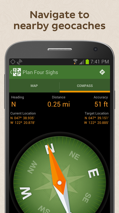 Geocaching.com приложения под Android. Дает возможность владельцам смартфонов на базе Android приобщиться к увлекательной геопространственной GPS игре, заключающейся в поиске «сокровищ» - различных тайников, созданных другими игроками в различных интересных местах мира. Для загрузки информации о тайниках понадобится соединение с Интернет, а для поиска самого тайника – только встроенный GPS.