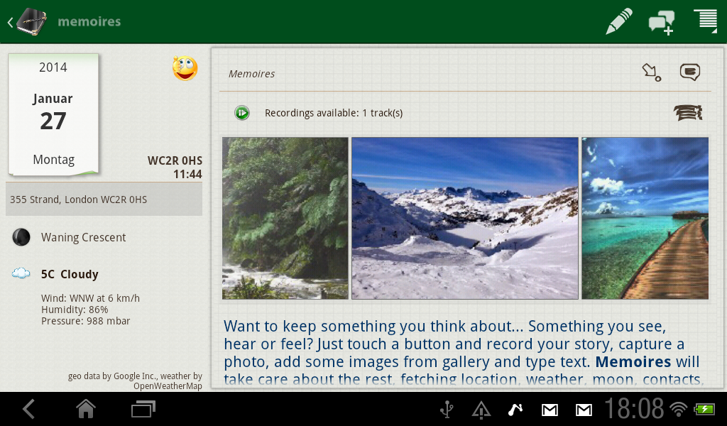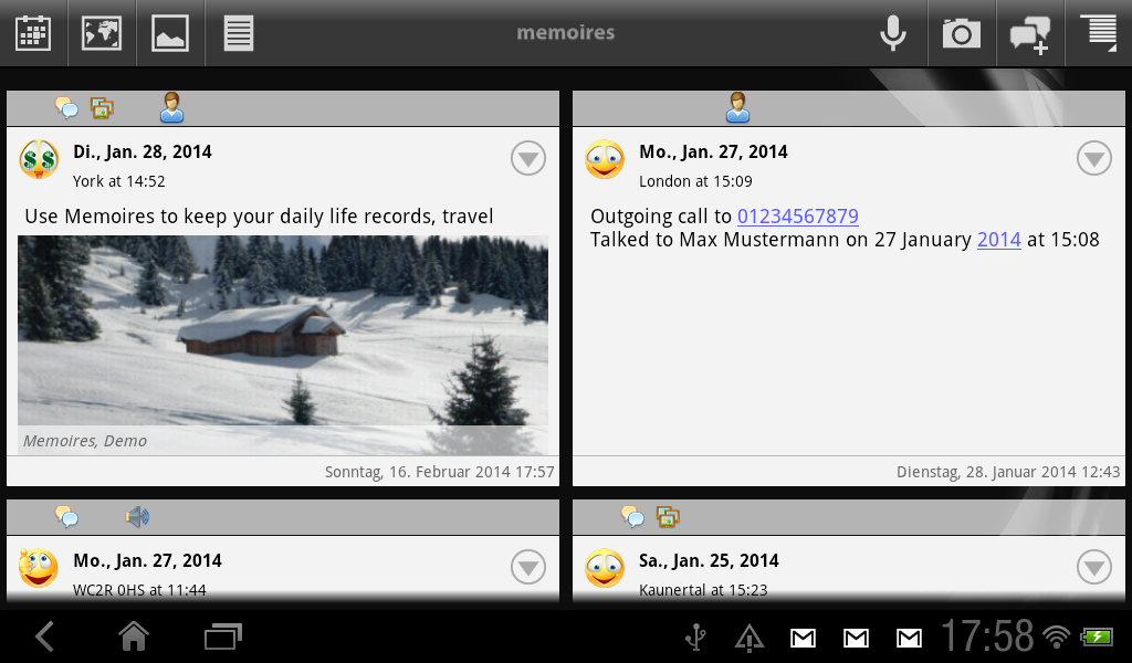 -Интеграция с контактами (требуется установка Memoires Contact Notes)