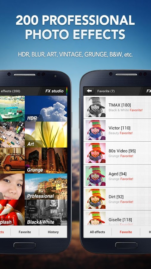 PicsPlay Pro - предназначен для редактирования фотографий, содержит около 110 готовых пресетов в 10 темах (Scene, HDR, Blur, ART, Vintage, Grunge, Beauty, Professional, Color Splash, Black & White), позволяя запечатлеть лучший момент в вашей жизни.