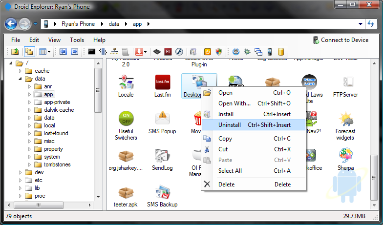 - Установка/удаление программ на устройстве через контекстное меню в проводнике