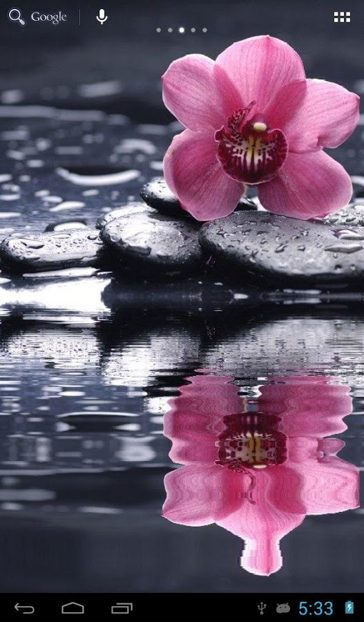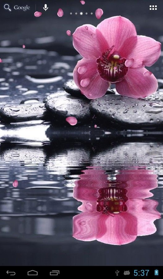 Расслабьтесь и медитируйте, глядя на орхидею над водой. В настройках вы можете добавить: эффект прикосновения к воде и падающие лепестки. Обои поддерживают портретный и пейзажный режимы и устройства с высоким разрешением.