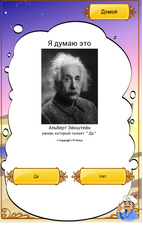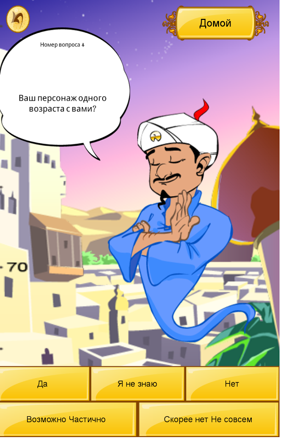 Акинатор может читать ваши мысли и угадать загаданного вами персонажа, просто задав вам несколько вопросов. Задумайте настоящего или вымышленного персонажа и Акинатор попытается его угадать. Осмелитесь ли вы бросить вызов гениальному джинну?