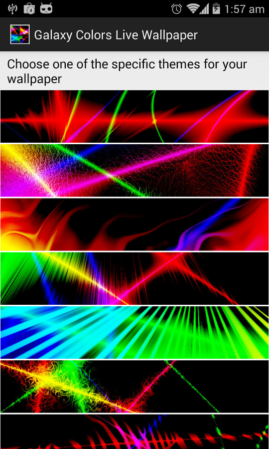 Это красивые визуальные эффекты, переливающиеся цвета, вращающиеся линии цвета, и другие эффекты возникающие при нажатии на экран вашего телефона или планшета. В этих обоях используется OpenGL, что снижает нагрузку на процессор вашего устройства, и экономит батарею.