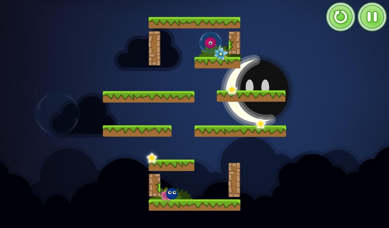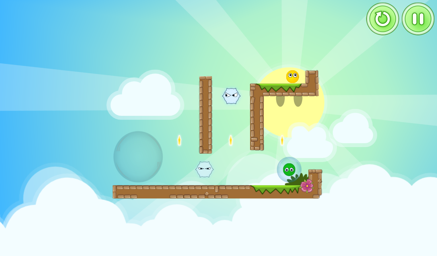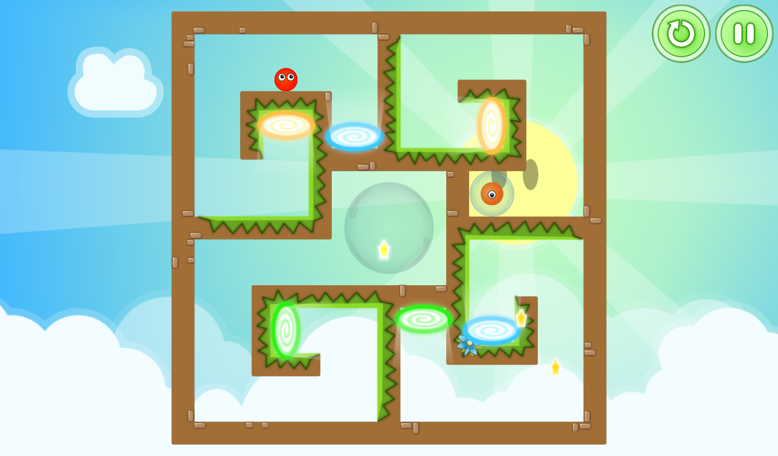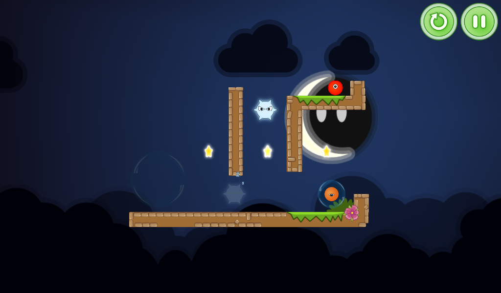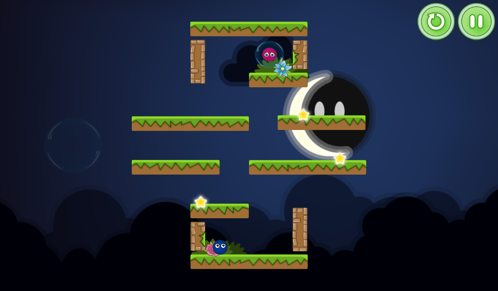 По мере прохождения игры сложность будет постепенно увеличиваться, так что вы не заскучаете! Вы будете проходить лабиринты, пролезать сквозь колючки, разгадывать загадки гравитации и многое другое, тем самым спасая таких же колобков, как и вы. Простая, но красивая графика будет часто выдавать красивые картинки для глаз, которые не раз встретятся вам в этом необычном мире забавных разноцветных колобков. Интерфейс и управление очень простое, для управления миром необходимо нажимать в правую и левую часть экрана.
