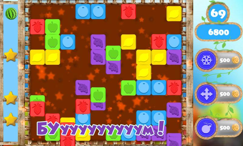 Просто нажимай на группы из блоков одного цвета! Наполни шкалу, и сделай БУМ! Лови хитрые фрукты, пока они не исчезли. Выполняй задания и ставь рекорды.