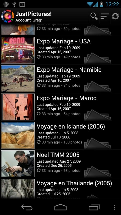 - Автоматические уведомления об обновлениях альбомов(Facebook, Picasa и Smugmug),