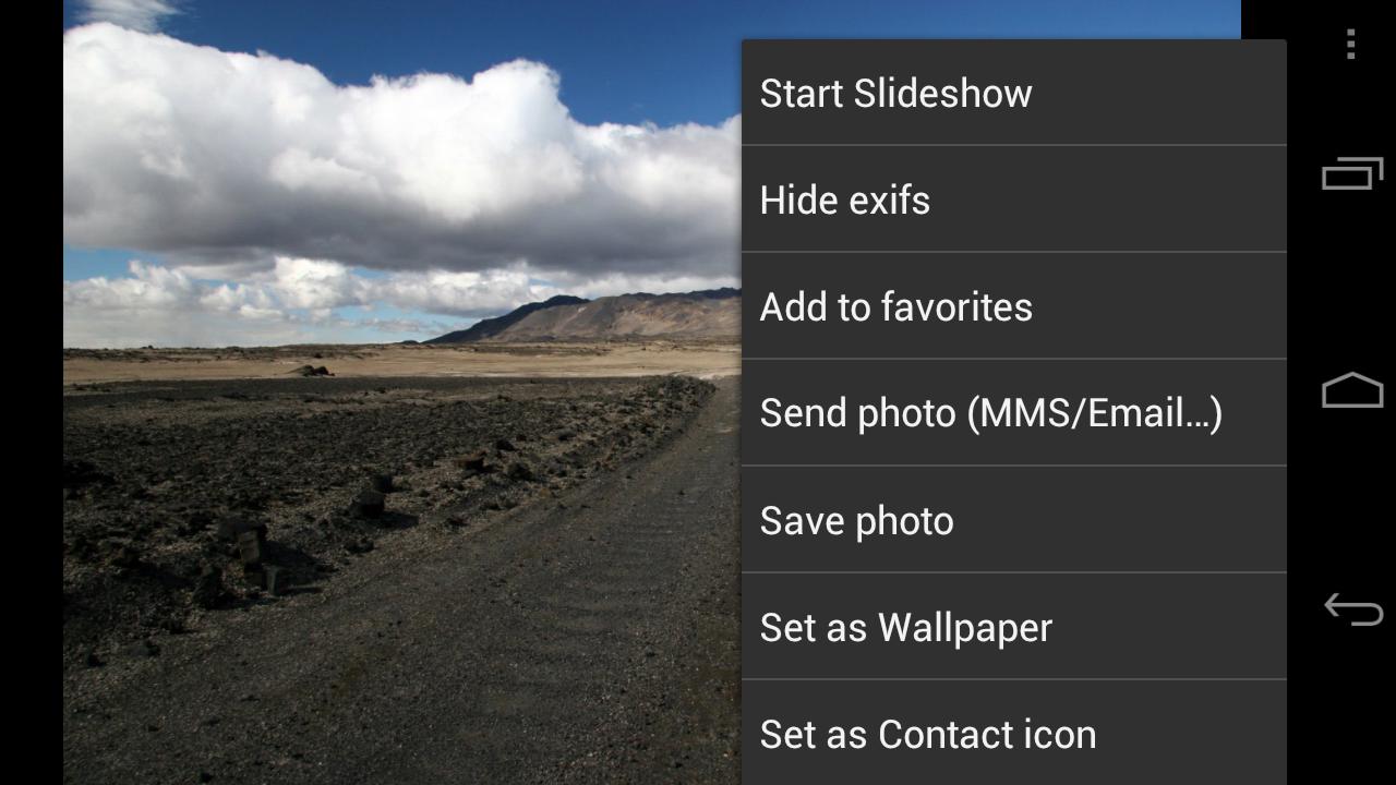 Позволяет просматривать фотографии из альбомов на Facebook, Picasa, Flickr, Smugmug, Photobucket, а также на вашей карте SD.