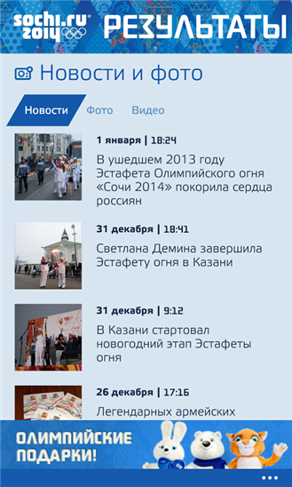 Официальное приложение «Результаты «Сочи 2014» - это полная информация по спортивной программе XXII Олимпийских зимних игр и XI Паралимпийских зимних игр 2014 года. Установи приложение и следи за медальной гонкой в режиме реального времени. Получи быстрый и удобный доступ к расписанию и результатам соревнований. Выбери страну, за которую ты болеешь, составь свою ленту избранных тем и будь в курсе последних новостей о твоих любимых спортсменах! «Результаты «Сочи 2014» - это твой личный медиацентр на Играх в Сочи.