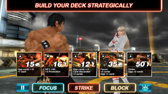 TEKKEN CARD TOURNAMENT - это потрясающие 3D-видеоэффекты, к которым привыкли игроки TEKKEN и зажигательные пошаговые карточные сражения, которые увлекают с самого начала и поражают интересными поворотами. Выпуск реальных карт TEKKEN CARD TOURNAMENT в начале лета 2013 года позволит объединить мир игры с реальностью. Уникальные QR-коды позволяют игрокам мгновенно добавлять физическую карту в виртуальную колоду, а возможности дополненной реальности - переносить игровых персонажей в реальное окружение игрока. Теперь железный кулак TEKKEN можно испытать когда и где угодно.