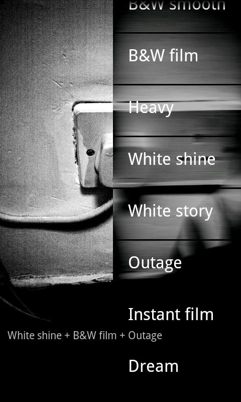 На данный момент в арсенале программы уже имеется большое количество эффектов. Это и Lomo Film, и всевозможные искажения, и ч/б, и свечения, и затемнения – все сложно перечислить. В общем, это тот случай, когда лучше один раз увидеть, чем сто раз прочесть.