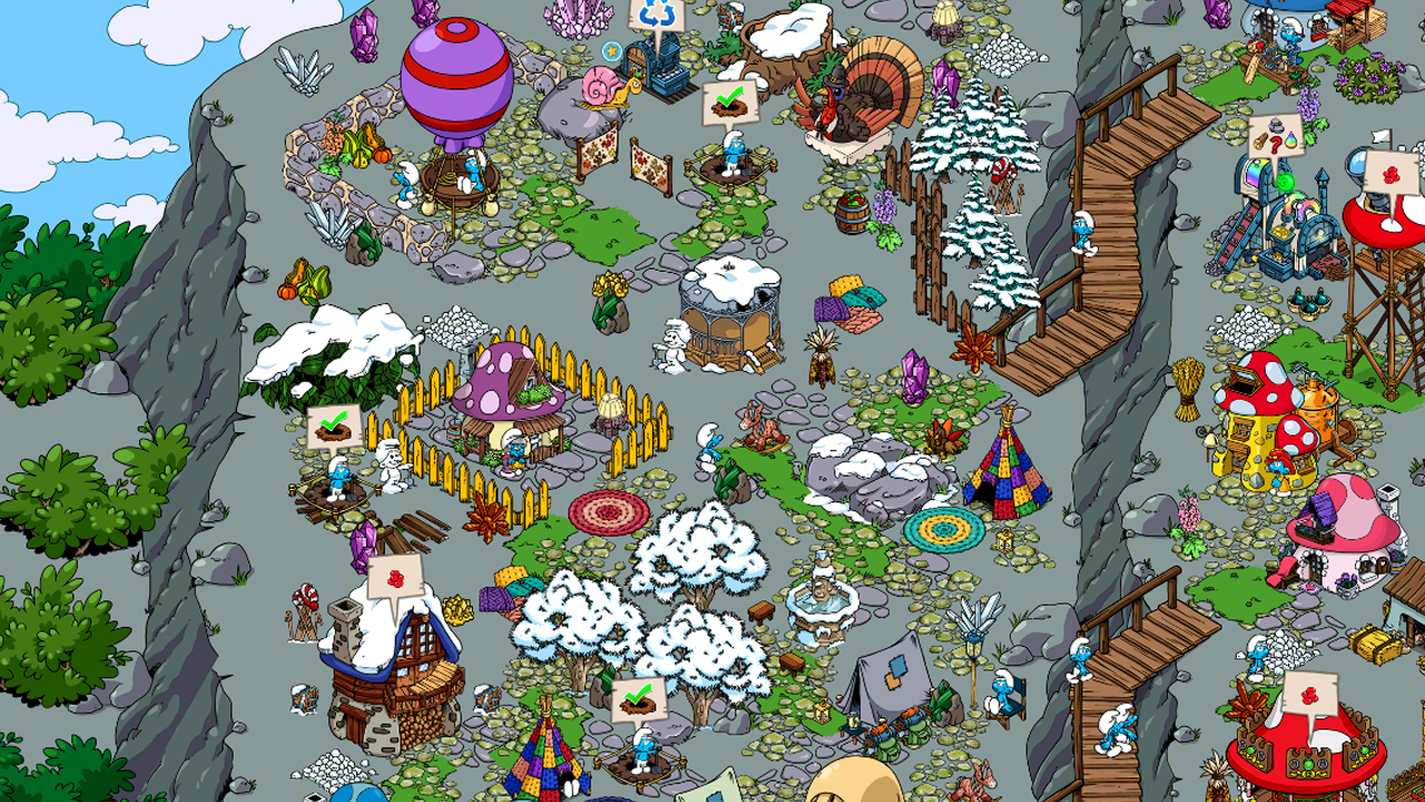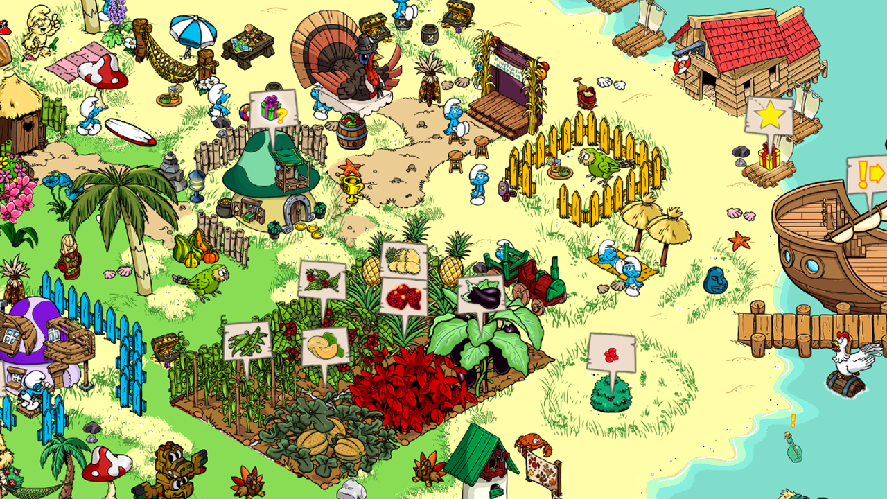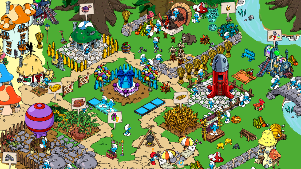 Smurfs Village игра про смурфов, построенная по мотивам одноименного фильма. вам предстоит построить целую деревню, начав с одного домика, наладить домашнее хозяйство, расширить территорию через освоение новых земель, а также заняться садоводством, выращиванием урожая и т.д. Красивая графика затянет вас в игру надолго!