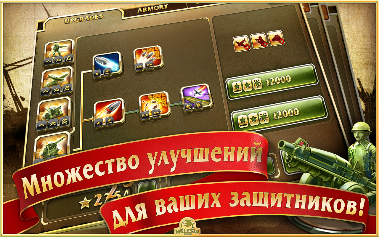 - Уникальное дерево улучшений для каждой оборонительной единицы