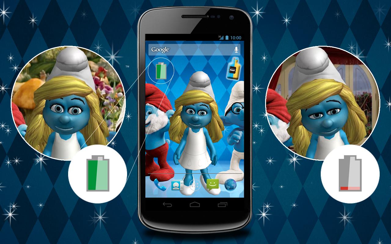 Живые обои со смурфиками. На вашем экране поселится осмурфительная подружка смурфиков, которая то будет строить вам глазки, то простого кружится. При желании вы можете установить на рабочий стол и виджет погоды со смурфиками и быть всегда в курсе какая погода у вас за окном. Живые обои The Smurfs 2 в отличном разрешении HD, так что они хорошо будут смотреться даже на больших экранах.