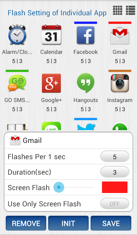 Уведомление вспышкой камеры о новых сообщениях / вызовах в таких приложениях как: Whatsapp, Email, Twitter, Будильник / Часы и многих др.