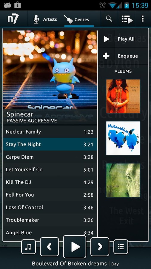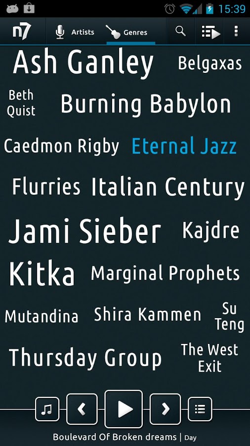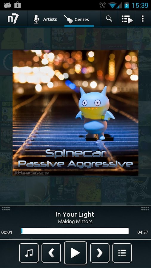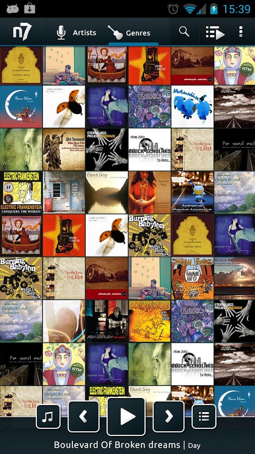 Приложение n7player – один из наиболее инновационных музыкальных плееров для Android. n7player заполняет пробел среди музыкальных плееров, в которых используются традиционные методы просмотра содержания, основанные на списках. Оснащен современным и уникальным графическим интерфейсом, представляющим музыкальные альбомы в трёхмерном изображении, что позволяет просматривать музыкальную библиотеку удобным для смартфонов способом.